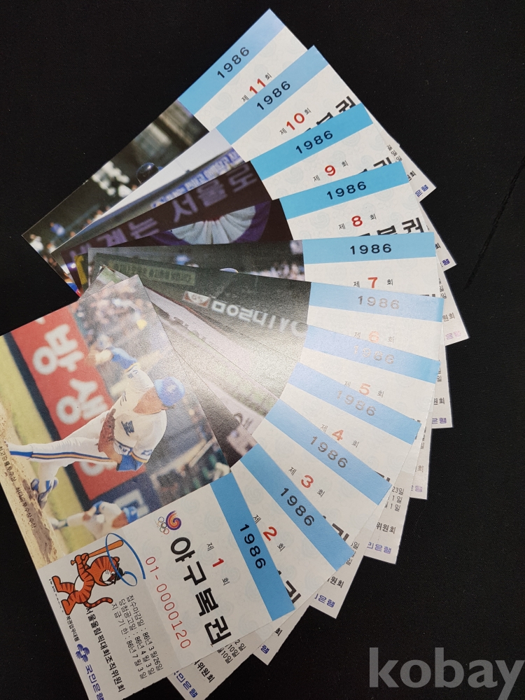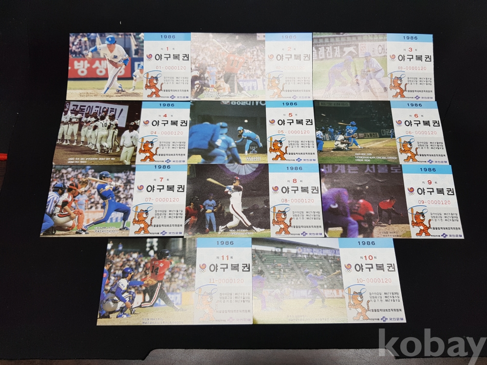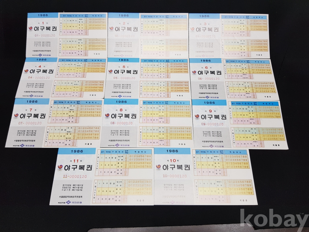- 미사용 1986년 야구복권 제 1회 ~ 제 11회 일련번호 120번 11종 모음