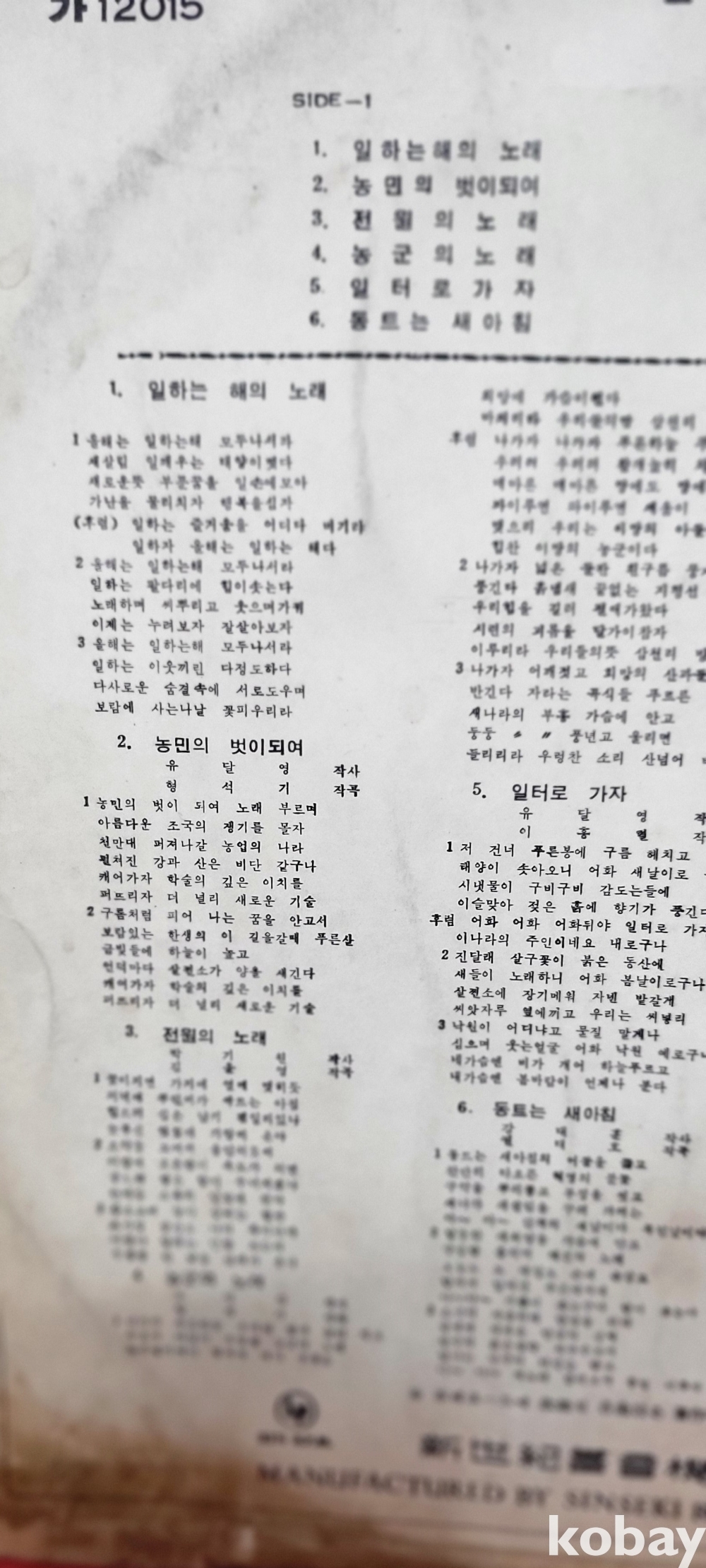 lp 레코드 판으로 국민가요 일하는 즐거움 새나라 노래집 제1집입니다,