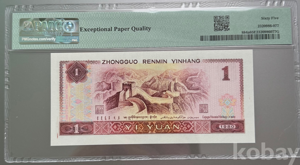 중국인민은행 1980년 1위안 PMG 65 EPQ