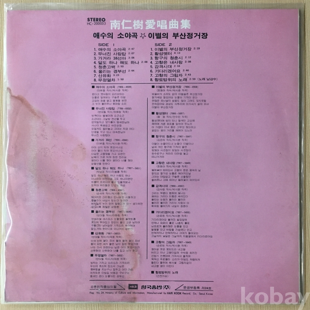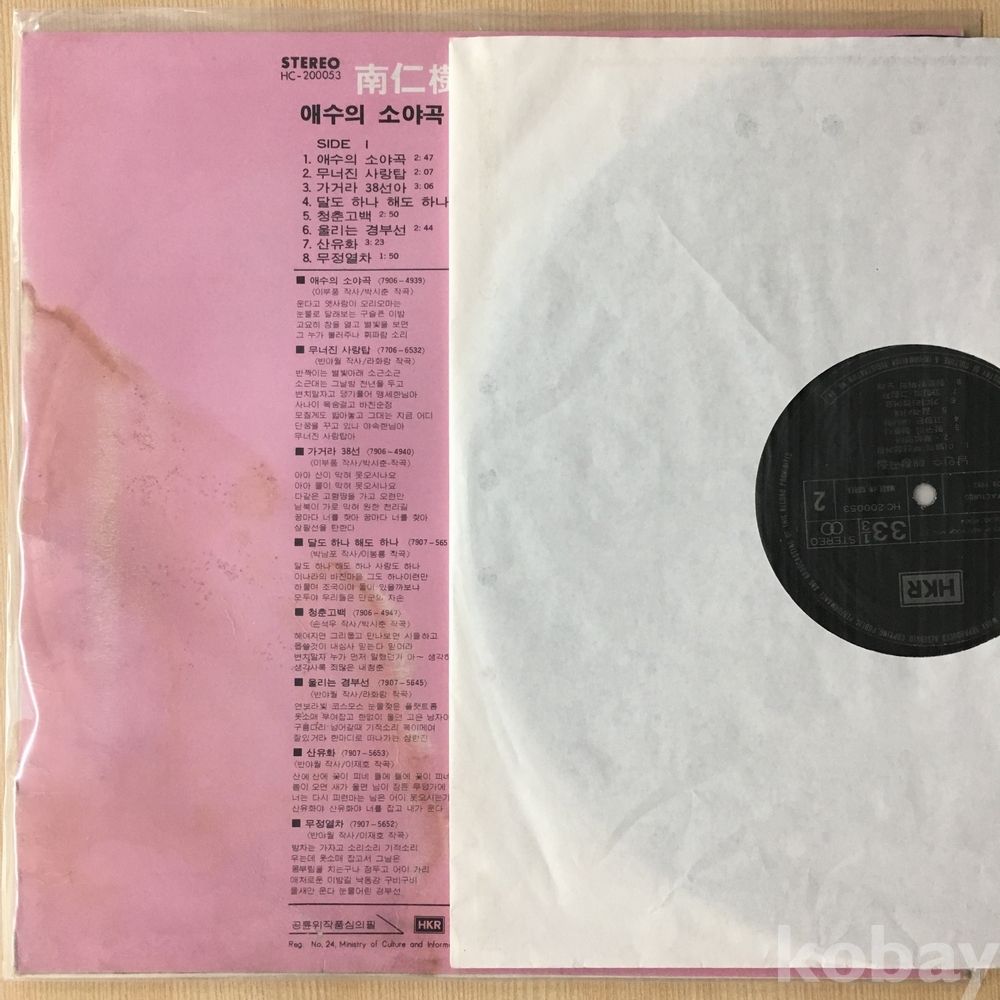 . 가요음반 대부분은 휘어짐이나 손상을 방지하기 위해 무지싱글자킷을 하나 더 사용하여 보관되었던 음반들입니다.