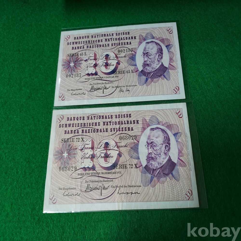 스위스 1970,71년 10프랑 2매 사용제