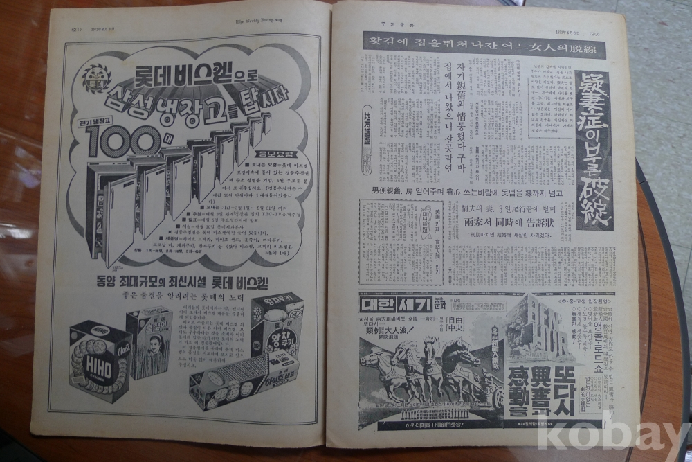 1973년 주간중앙 잡지 - 표지모델 가수 김춘자 -