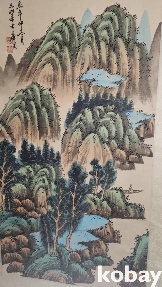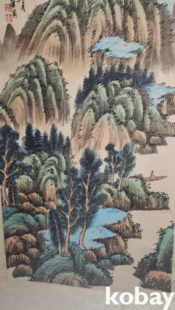 중국 유명화가 당인 作 대형급 산수화 족자입니다,