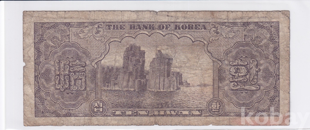 - 한국은행 1956 신 10환 백색지 사용제 지폐 입니다.