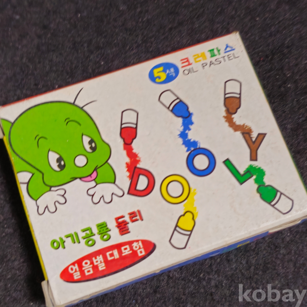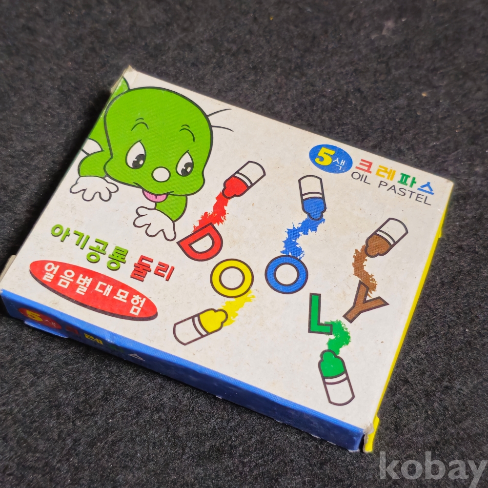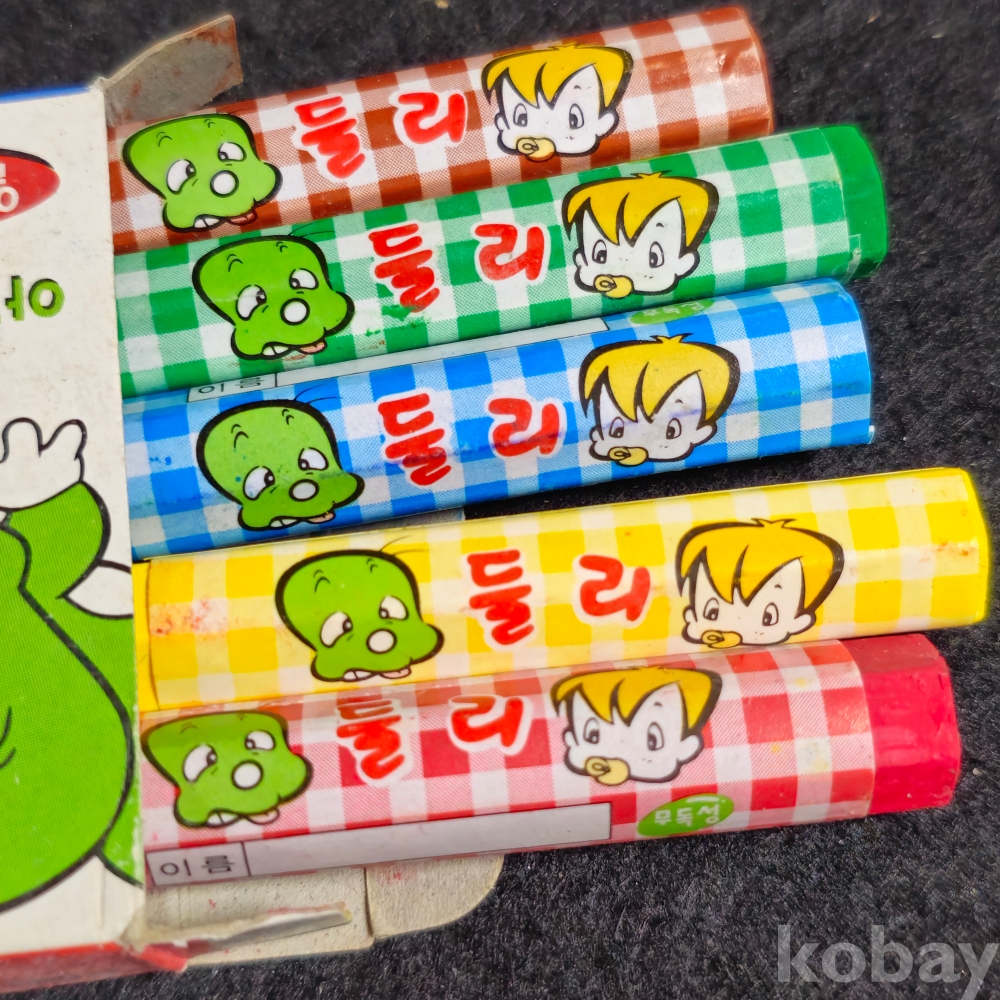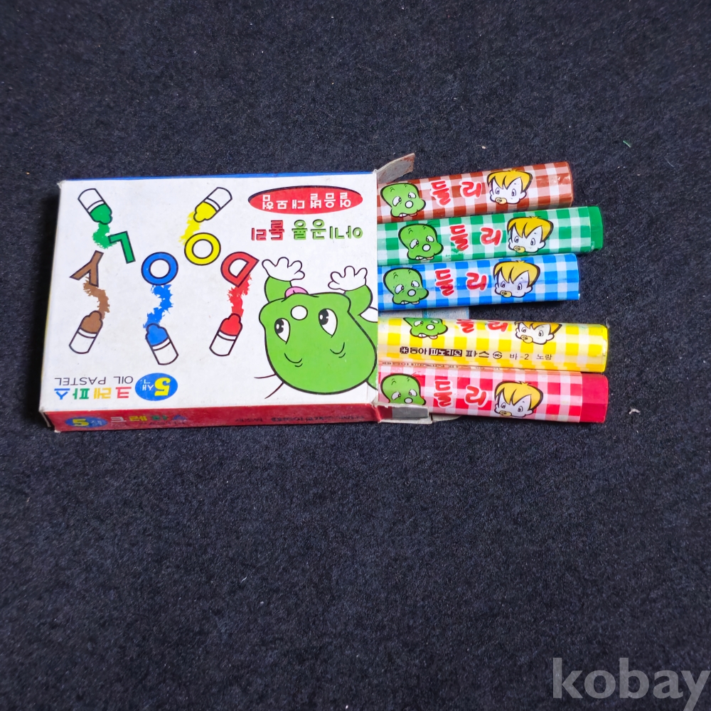 (((근현대사자료))) 1980년대 아기공룡둘리 얼음별대모험 5색크레파스 (동아)(미사용)