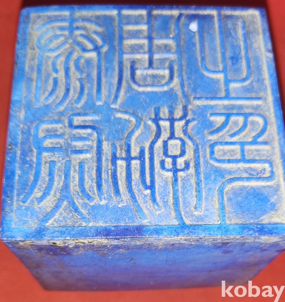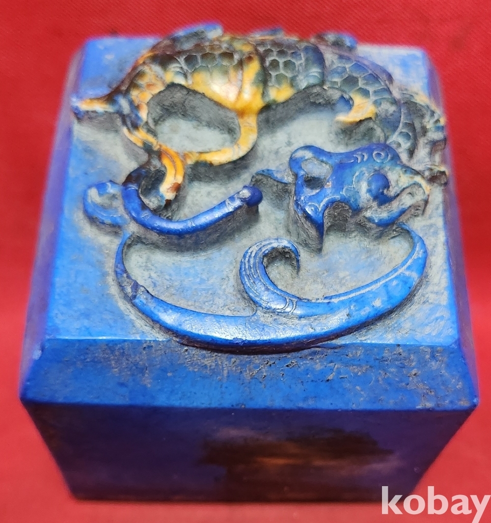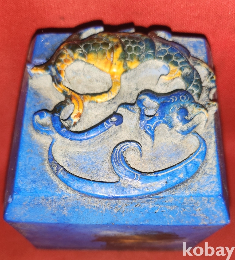 공작석으로 만든 동물문양 큰 사각 도장입니다,