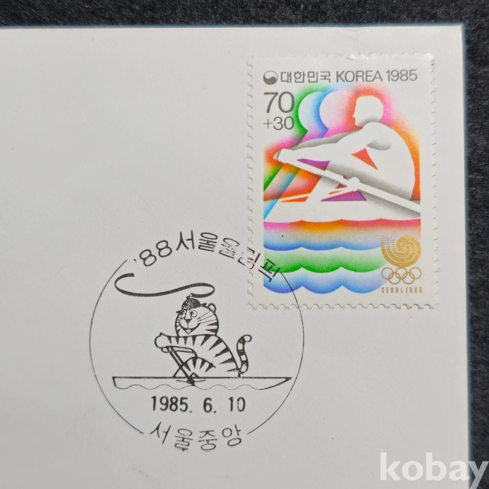 (((올림픽자료/초일봉피))) 서울올림픽 호돌이 마스코트있는 서울중앙 초일봉피 (1985.6.10)