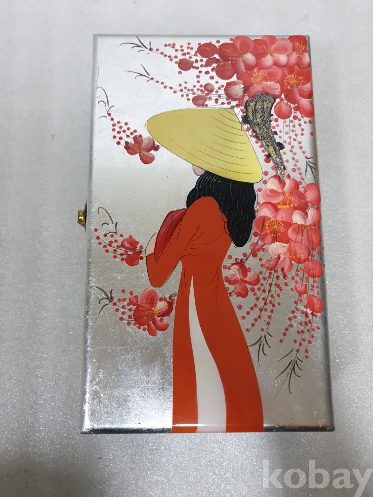 {천원경매} 10-0078 여인과 꽃그림 사각 보석함(24*14*5, 기스있음)