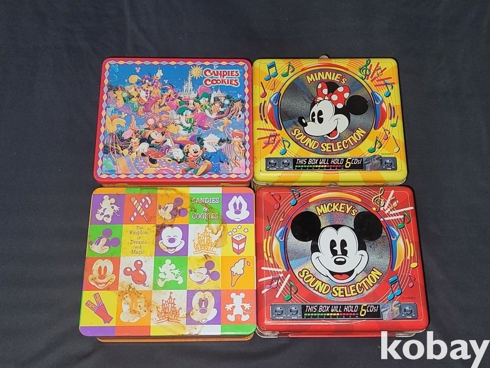 빈티지 세월 감이 느껴지는 소품으로 좋은 90년대 도쿄 디즈니랜드 기념품 틴케이스 가방 4종 일괄입니다.