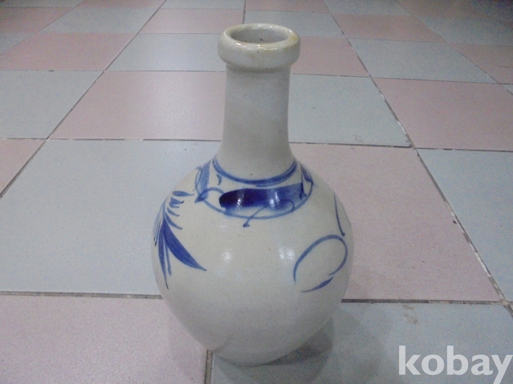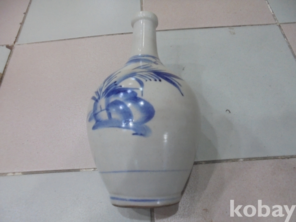 왜정시대 전후하여 잘살던집에서 혼례식 주병으로 많이 사용한 오래된 백자청화 특이목단 가락지 고급주병