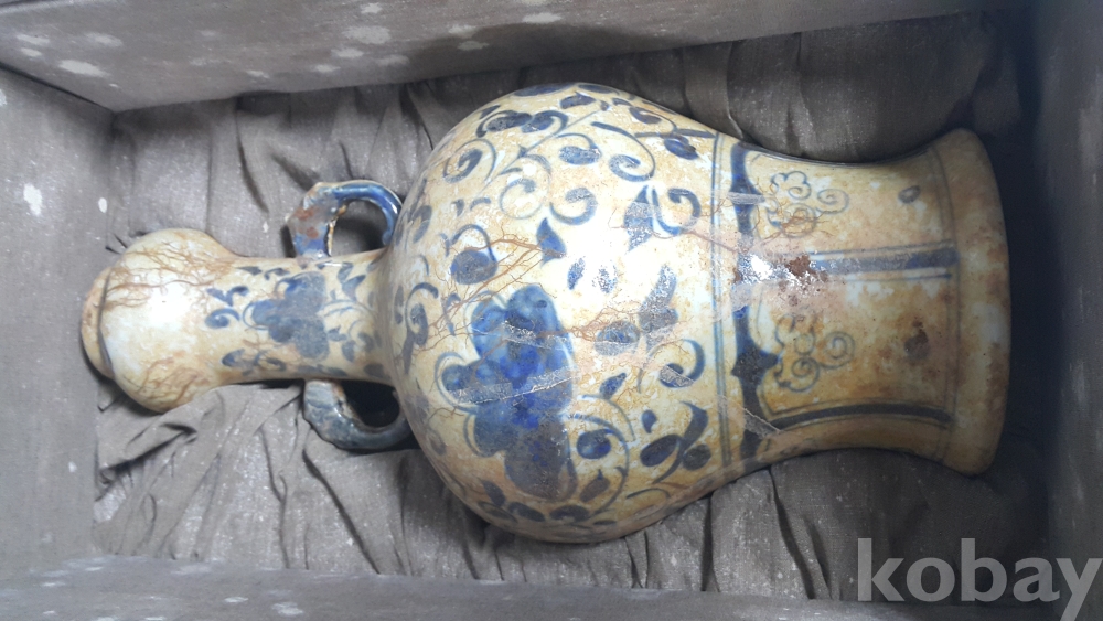 a-52. 오래된 민국피난박스에담긴 청화백자 상이병