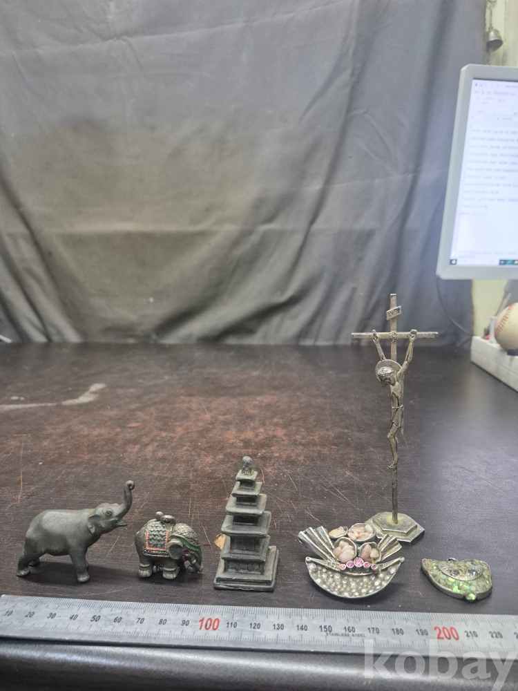 주석으로 만든 소품 6점 코끼리 2점 주석탑 주석 브릿치 예수그리스도 상 6점 4*1*14