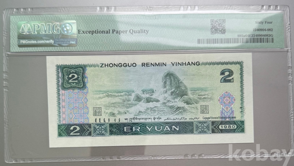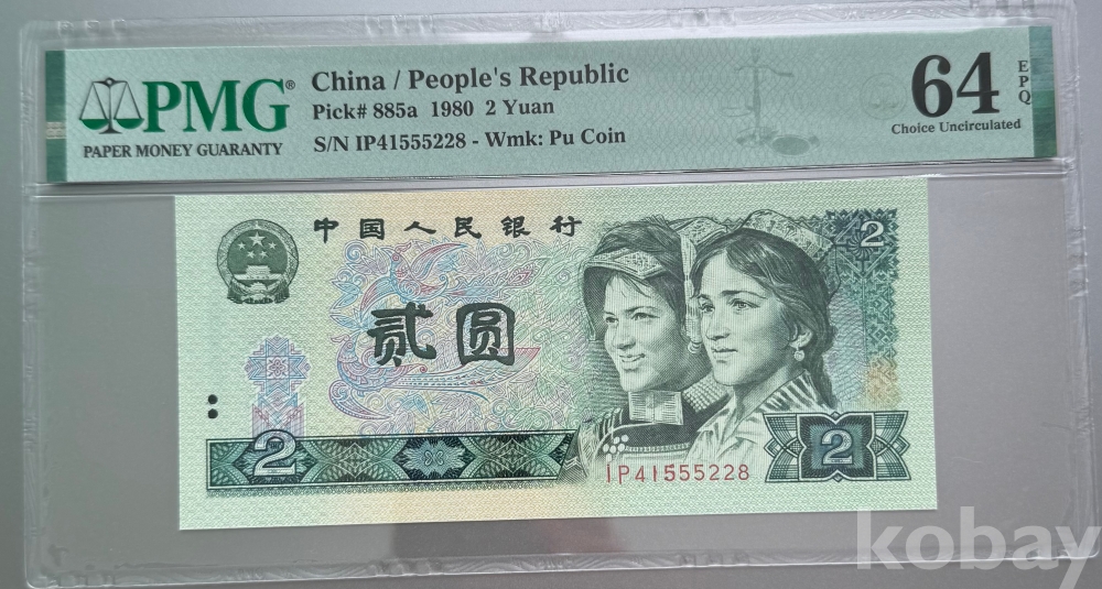 중국인민은행 1980년 2위안 PMG 64 EPQ