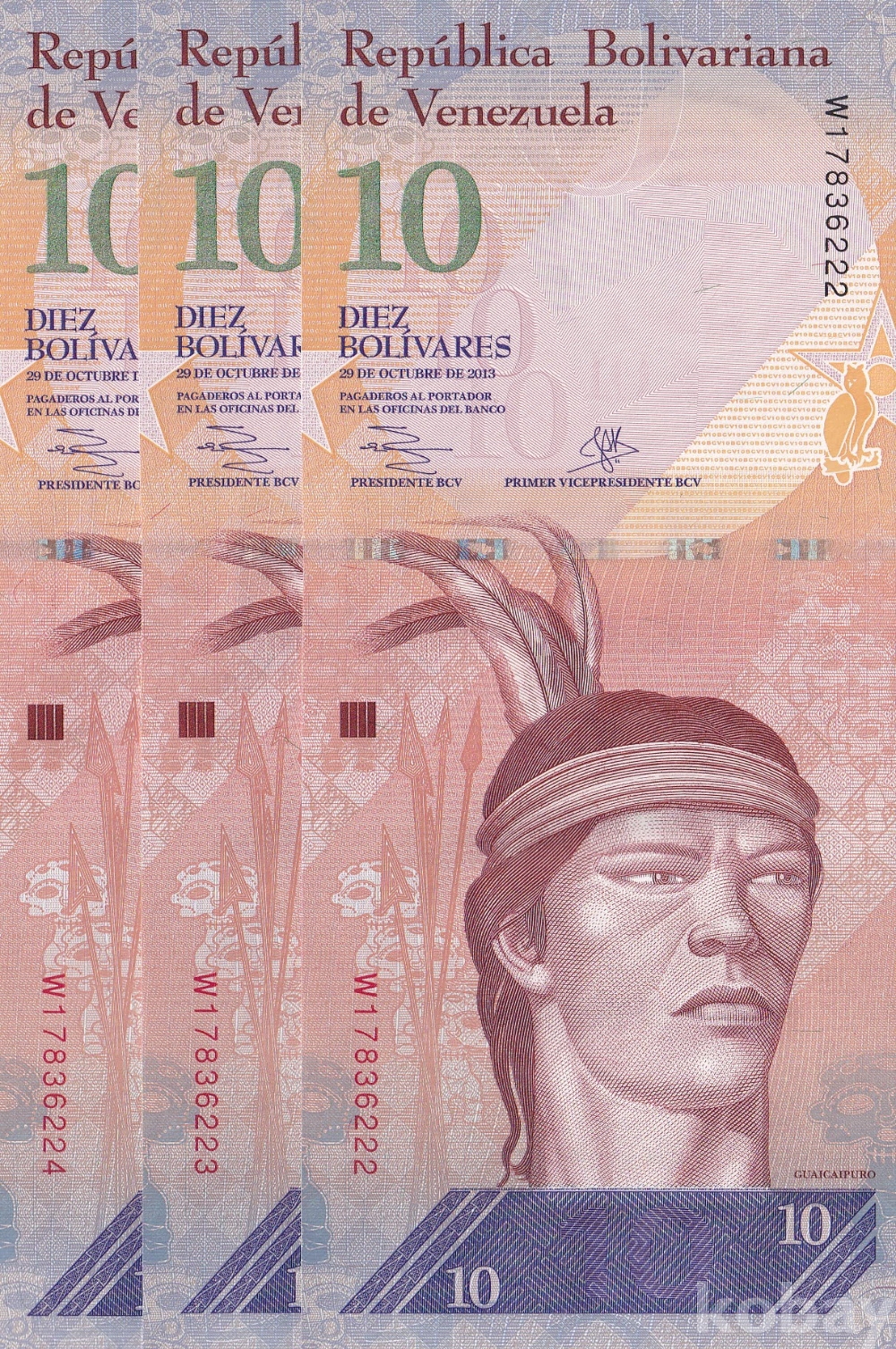 - 베네수엘라 2013년 10 볼리바르 3연번 미사용 지폐