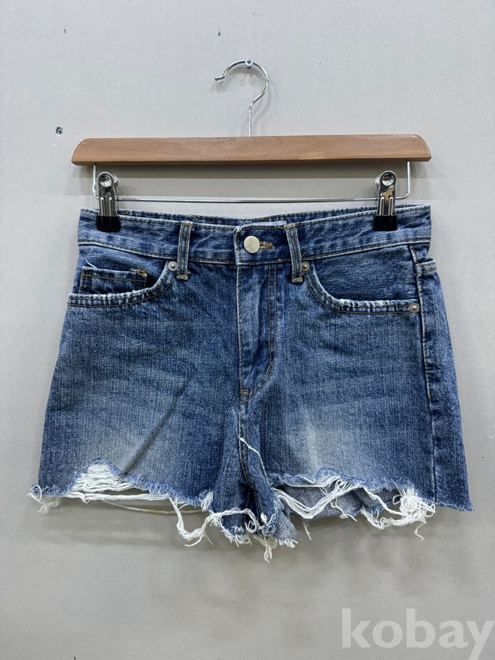 [천원옷장] #118 오카이 여성 진청 컷팅 데님 숏팬츠 빈티지 청반바지 26인치
