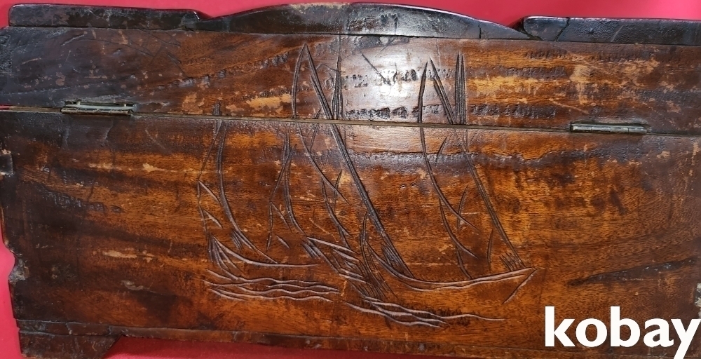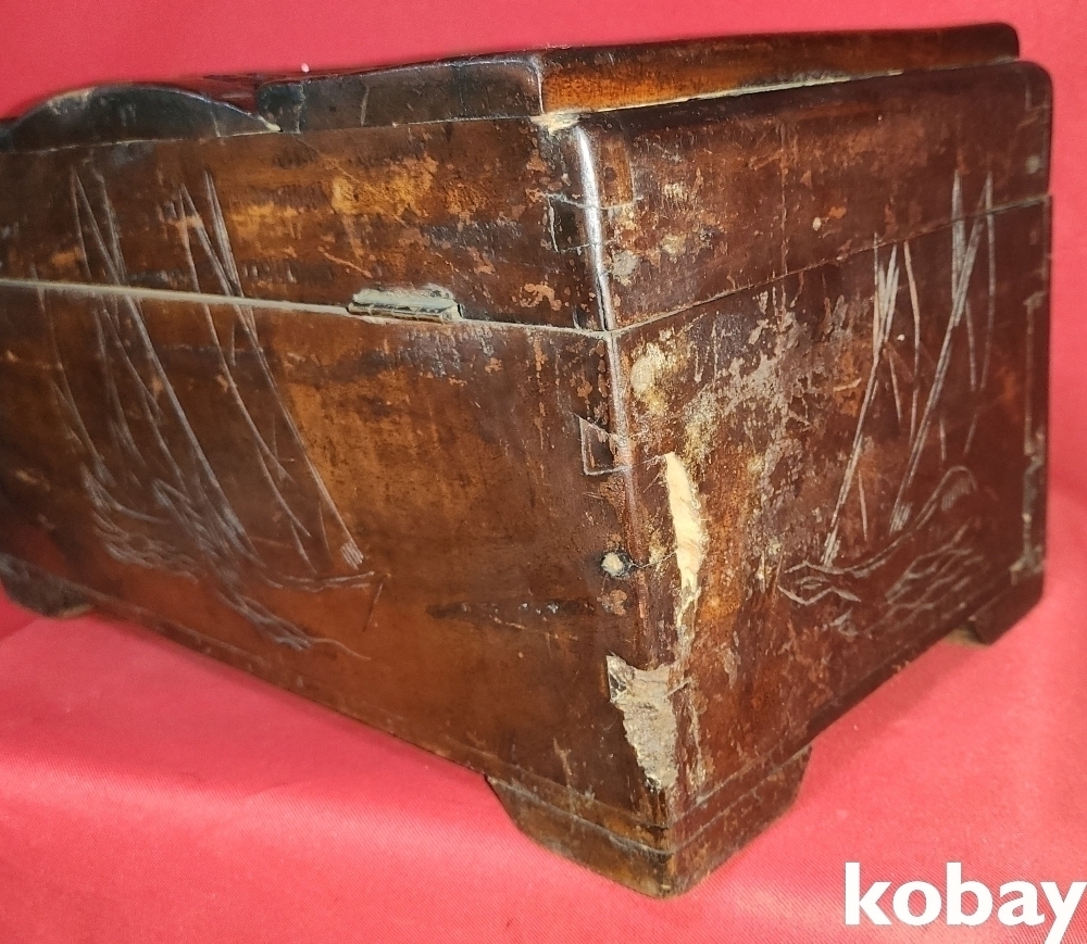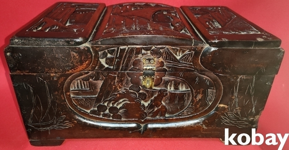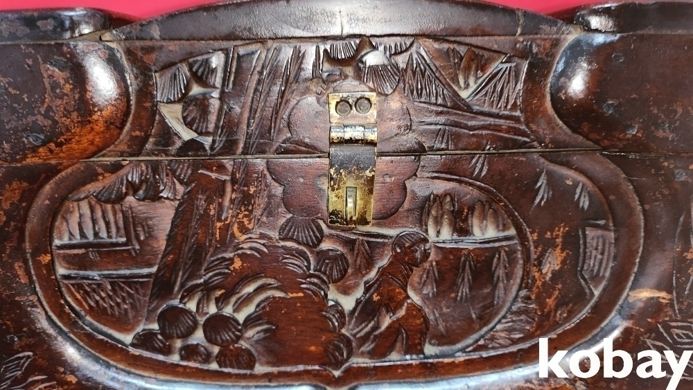 붉은색 화류목 나무로 만든 산수 가옥 문양 고급형 나무함입니다,