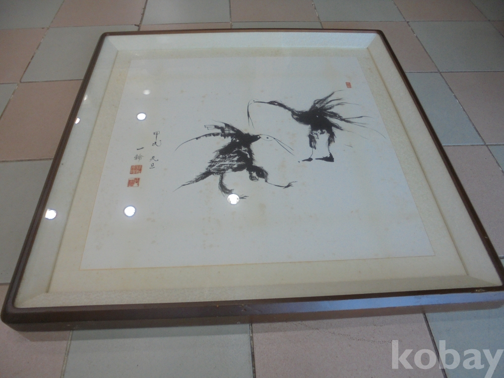 일륜 (一輪) 스님 갑술 1994년작 학이 무언가 다른 유명한 일륜스님의 구상적인 학그림 큰액자 가로세로 86 x 90 cm