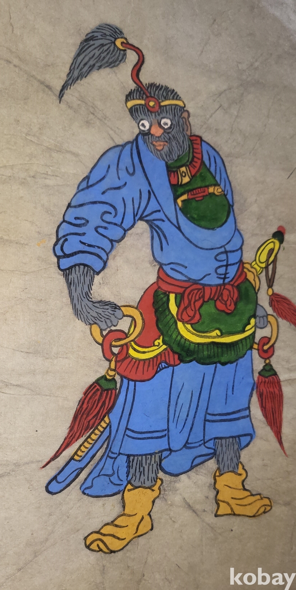 구한말 연대 갖춘 장지 바닥에 당채로 그려진 동물 형상 그림입니다,