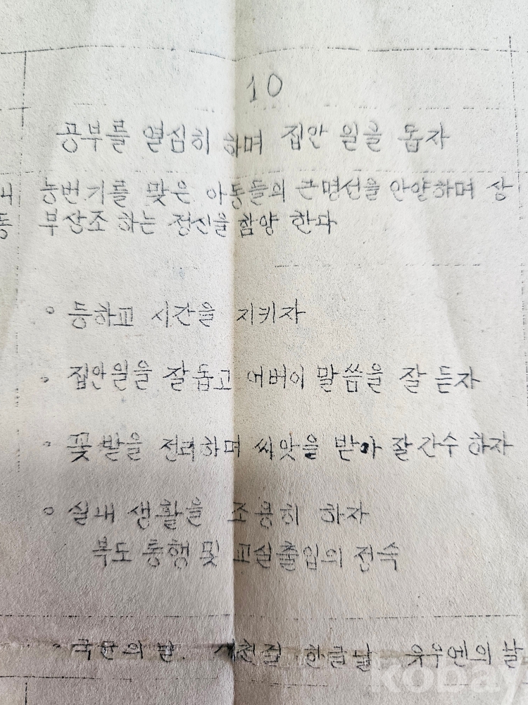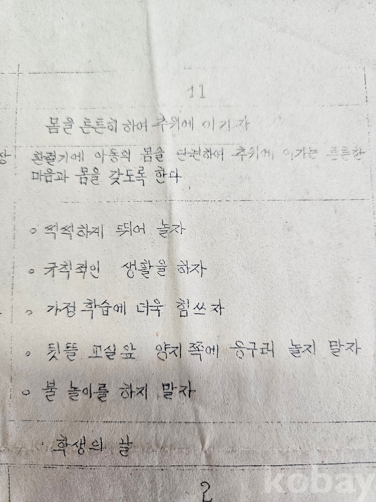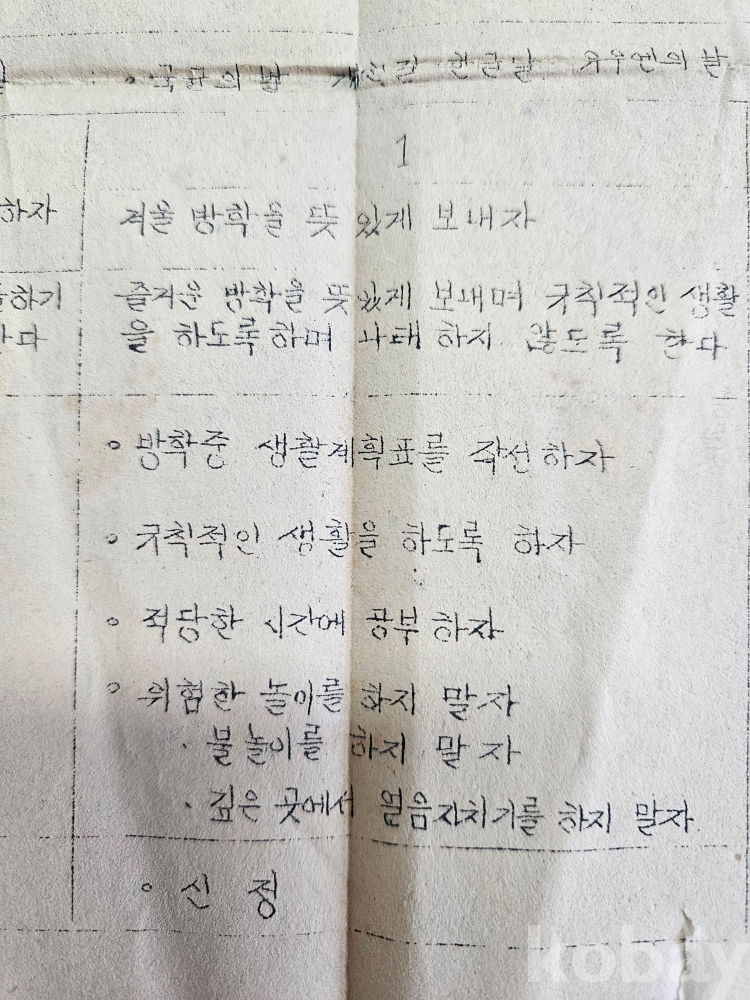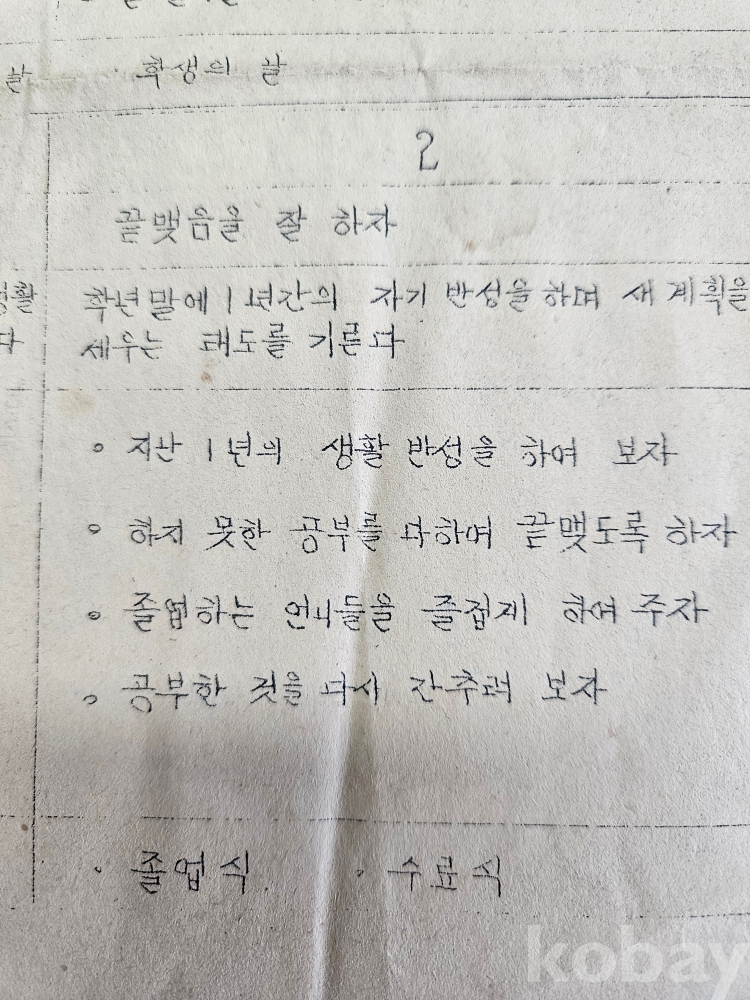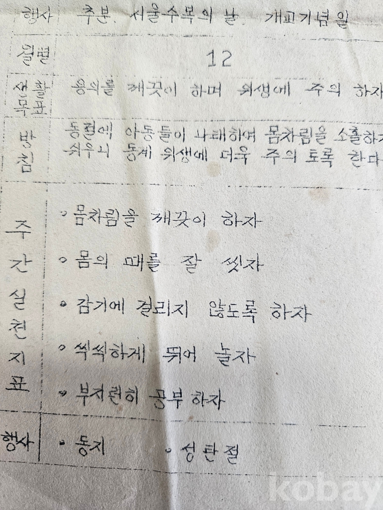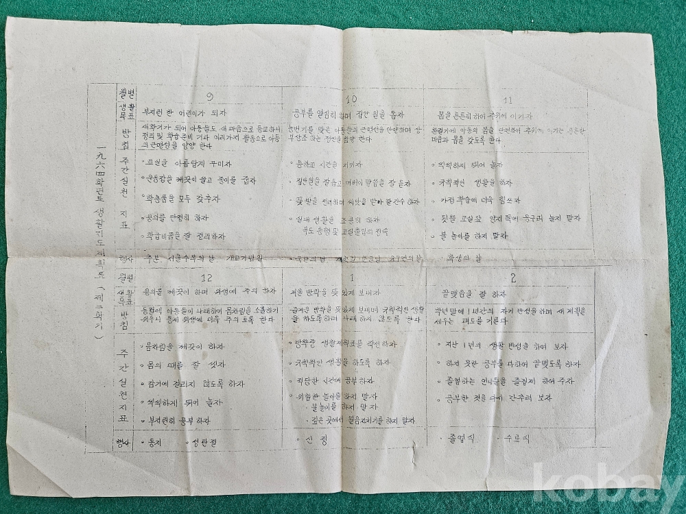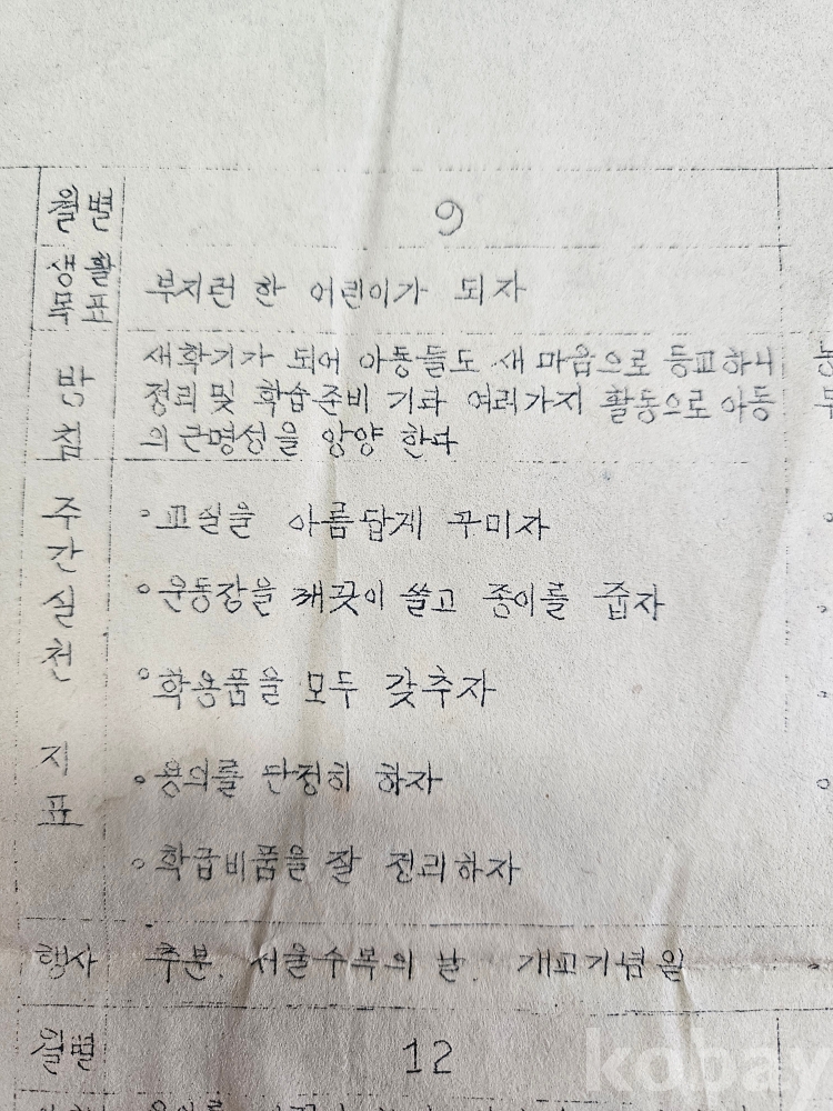 ♧1964년 2학기 생활지도 계획표/초등