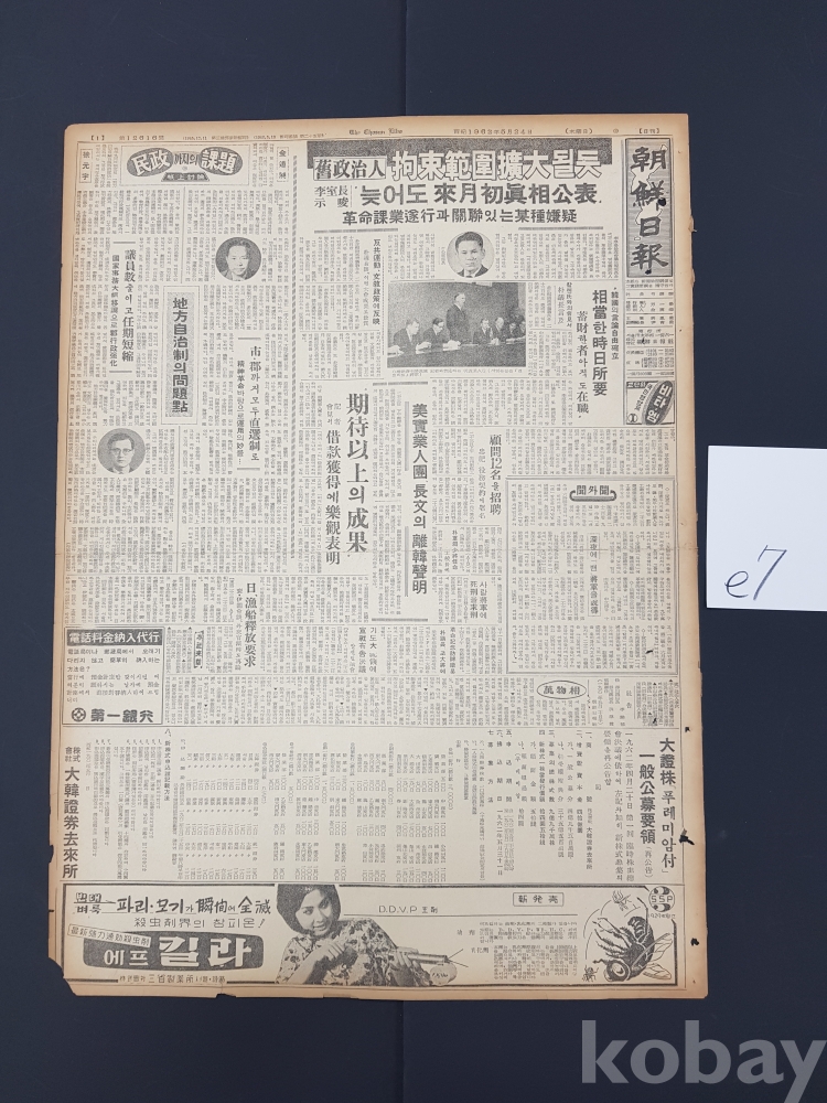 **** 조선일보/1962년 5월 24일/2면*유한짓 유한양행 등 광고 포함
