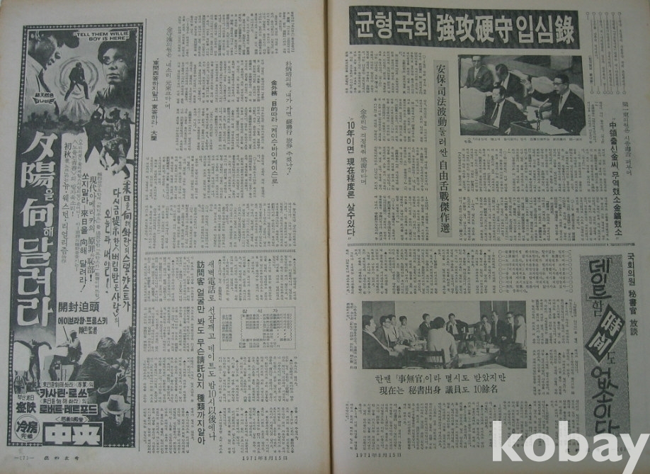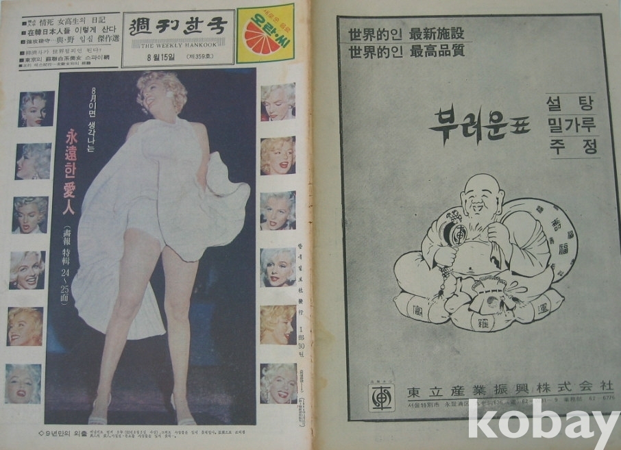 1971년 주간한국 잡지 - 표지모델 할리웃 영화배우 마를린 몬로 -