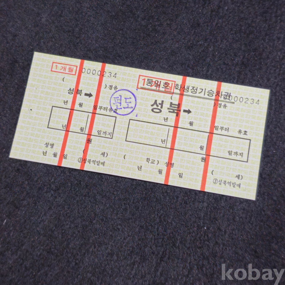 (천원경매) (((철도자료))) 오래전 통일호 학생 정기승차권 (성북역발매) (1개월)(편도)