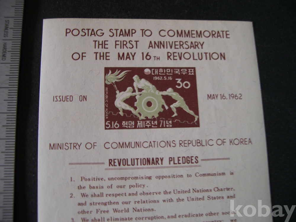 영문시트 #927 : 30환 건설의 상징 - POSTAG "E" 누락 (이면 노 굿)