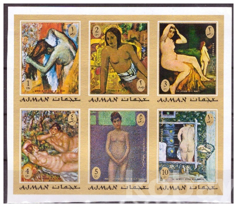 (누드명화) Ajman(아지만) 1971 에드가 드가의 <화장실에 있는 여자>외 (무공) sheet of 6 MNH