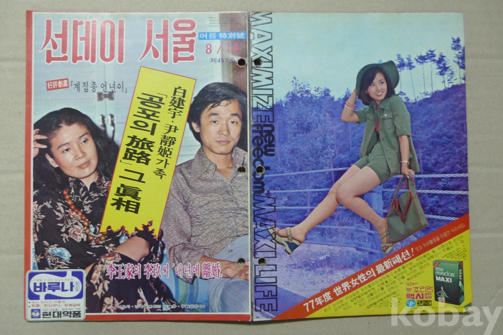 1977년 선데이서울 잡지 - 표지모델 영화배우 윤정희 백건우 부부 -