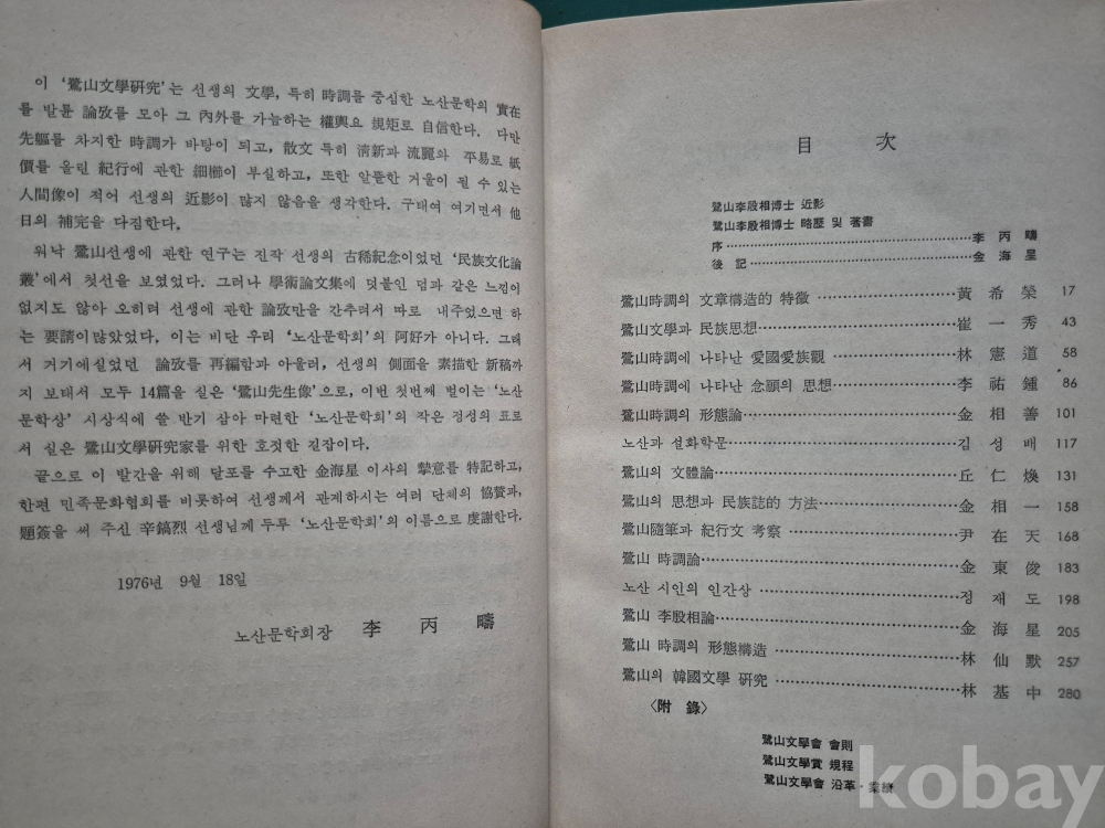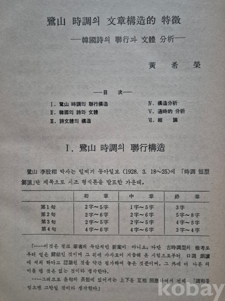 黃希榮 교수의 「鷺山時調의 文章構造的 特徵」 등 14편의 論文.