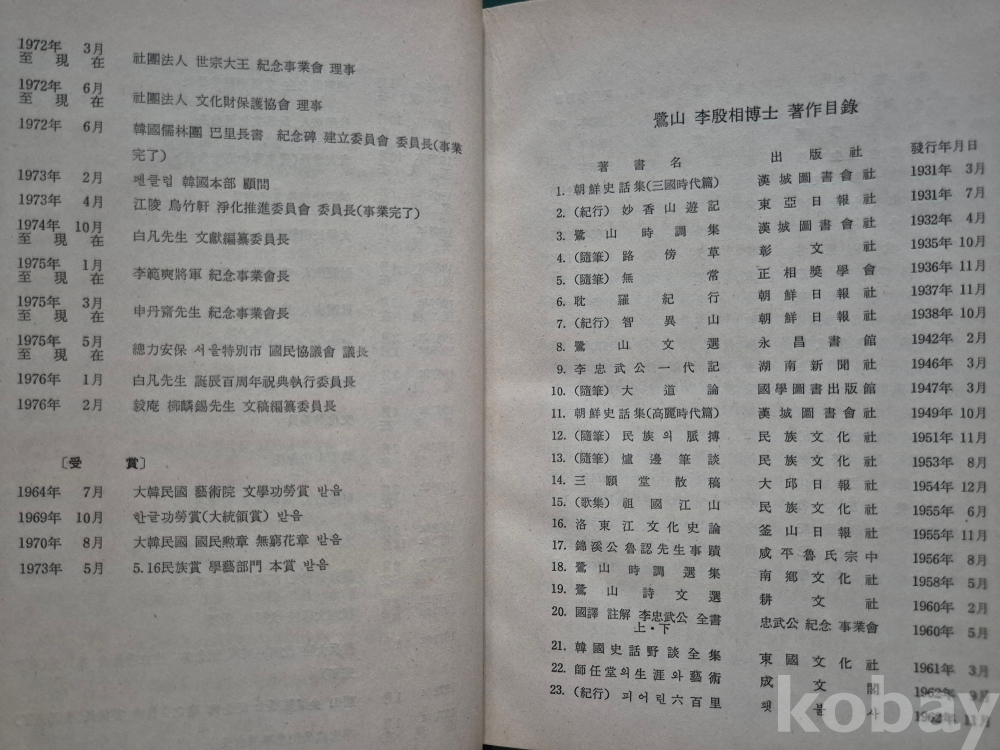 전기 『李忠武公 一代記』(1946) 『師任堂의 生涯와 藝術』(1962) 『師任堂과 栗谷』(1966) 『聖雄 李舜臣』(1969) 등.