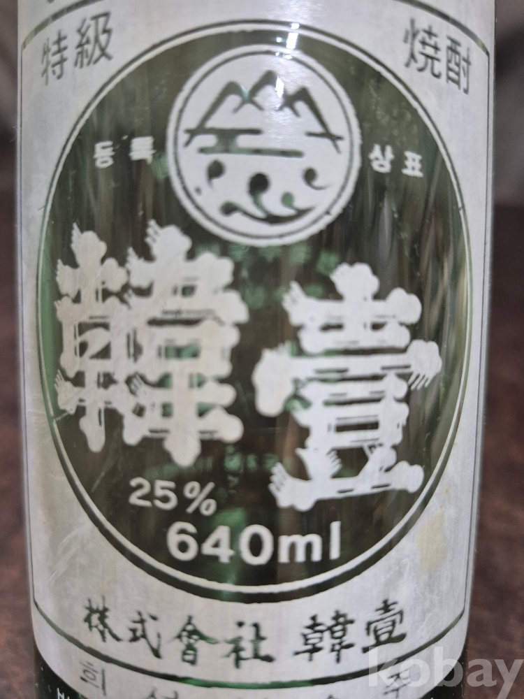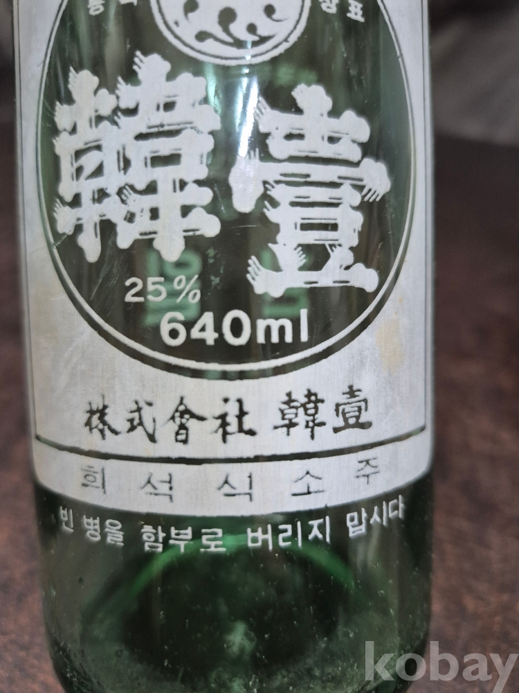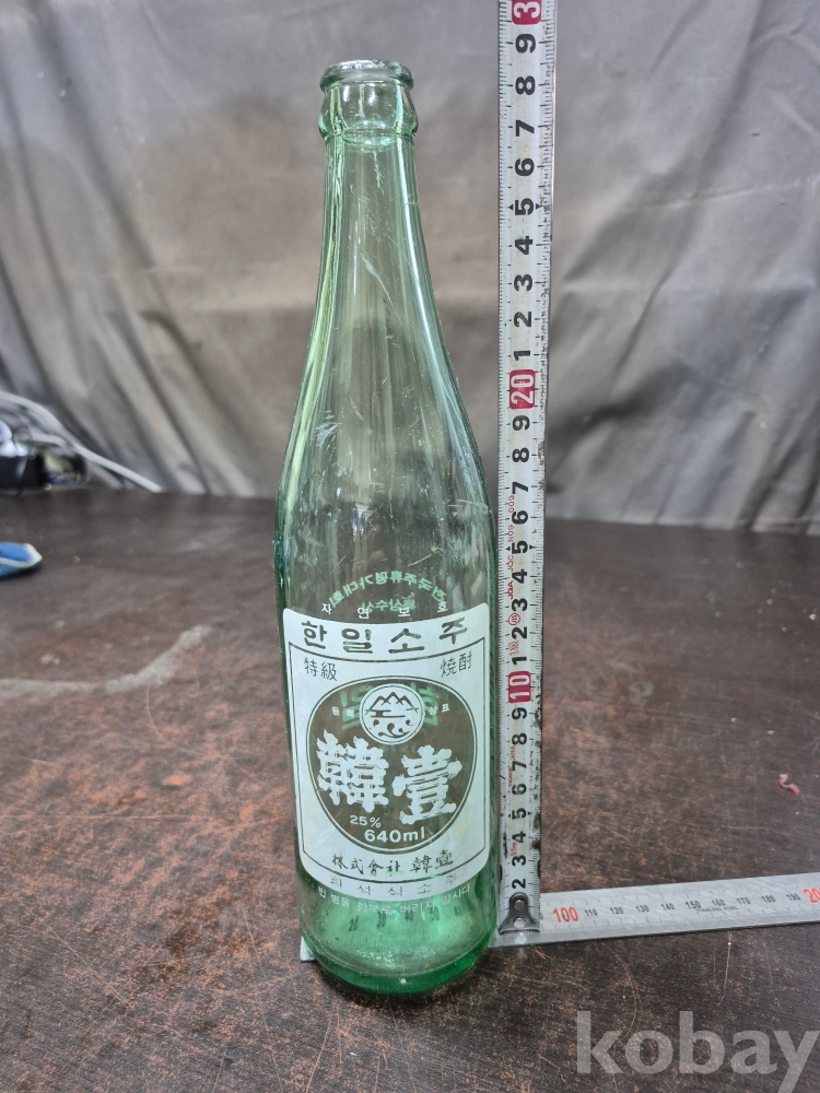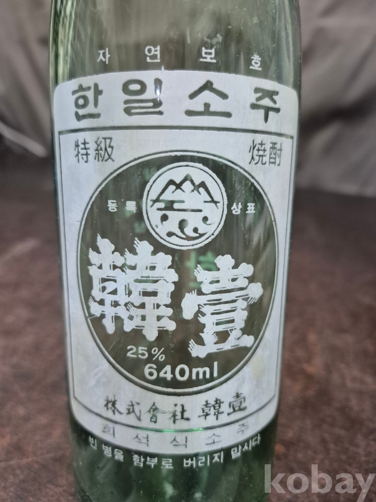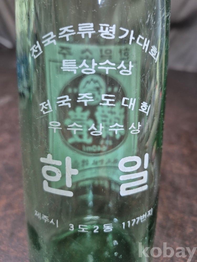 제주도 소주 한일 소주병 640ML 전국 주류평가대회 특상수상 전국 주도대회 우수상수상 7.5*7.5*29