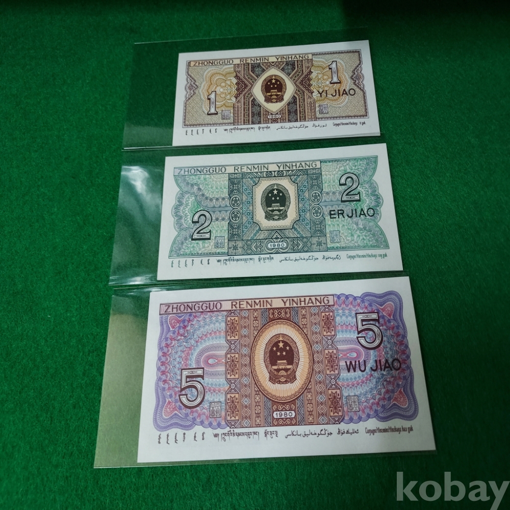 중국 1980년 1,2,5각 3종세트