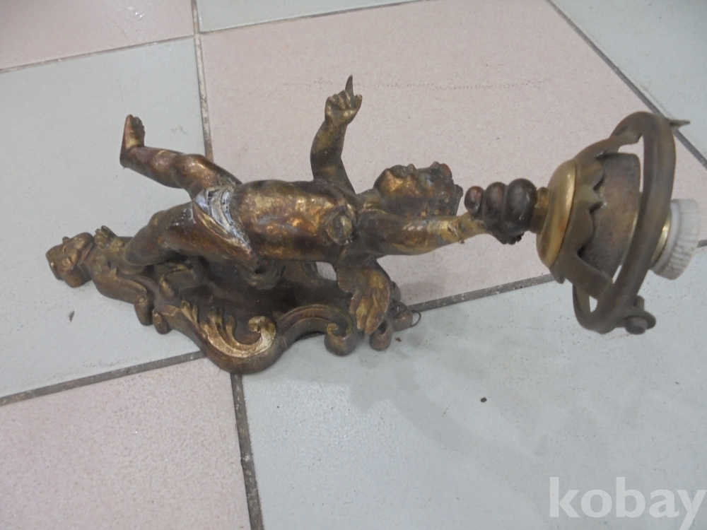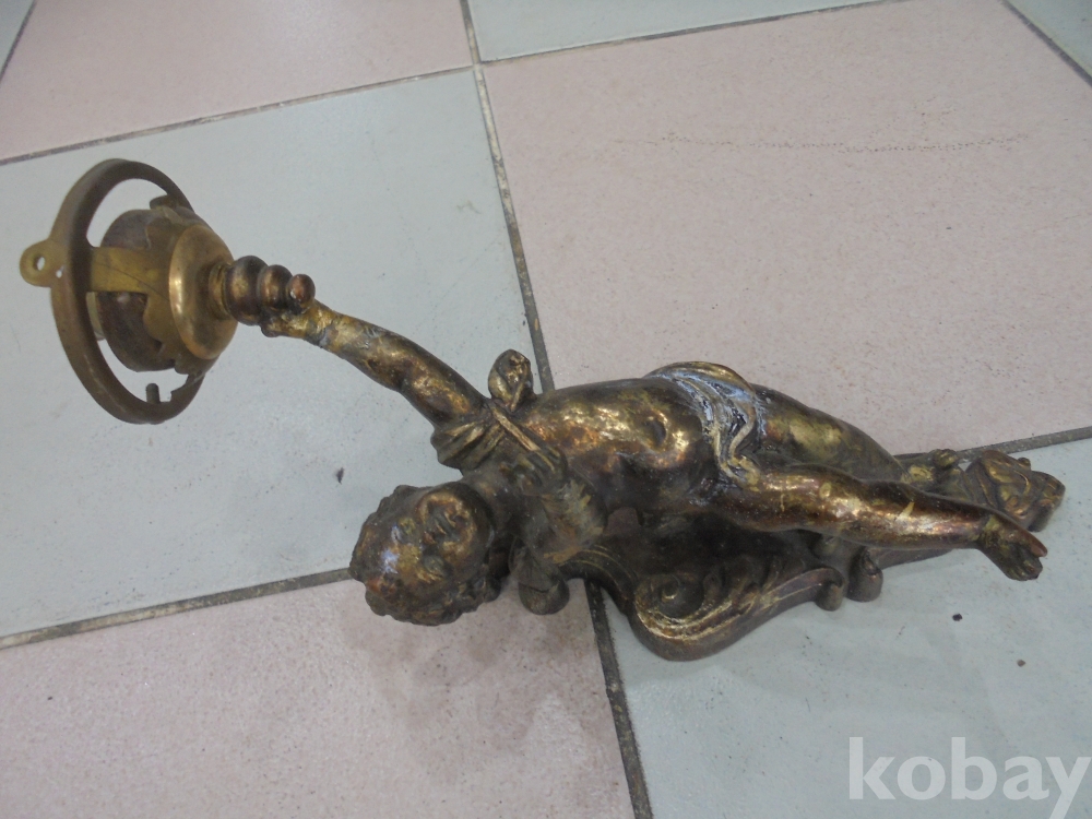 유기합금으로 만들어 무거우며 작은전구만 있으면 되지않나하는 완전예술품인 벽에거는 전기다마 횟불든 유기합금 날개있는 소년천사 벽걸이