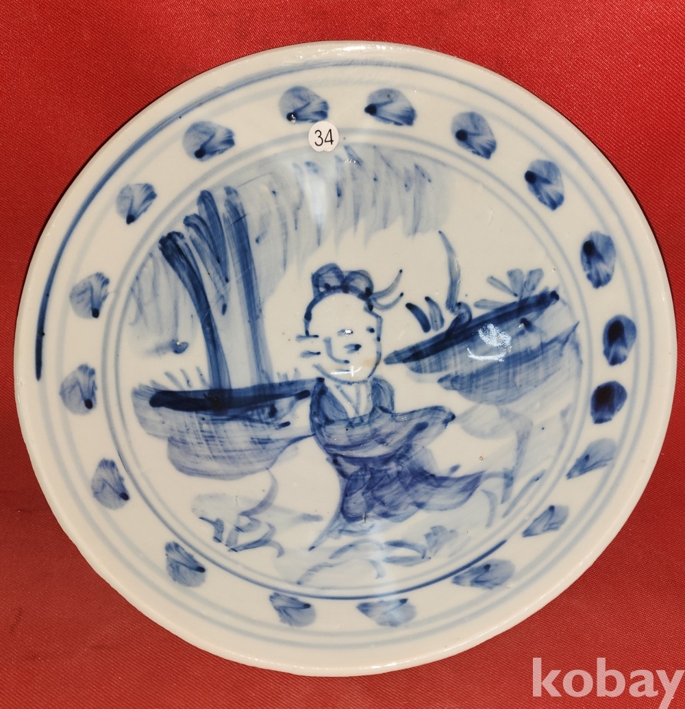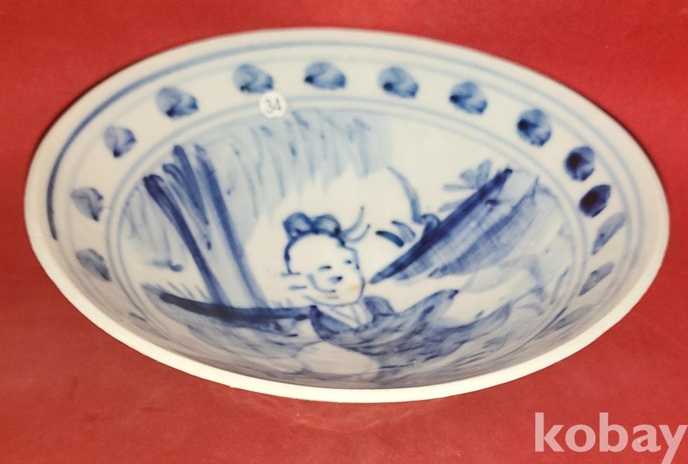 연대좋은 소마리 청화 인물 문양 다완입니다, 기물 전체에 도안이 가득한 명품입니다,
