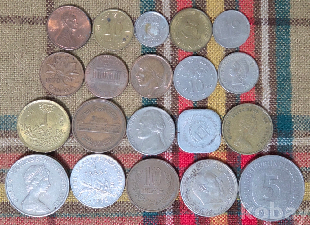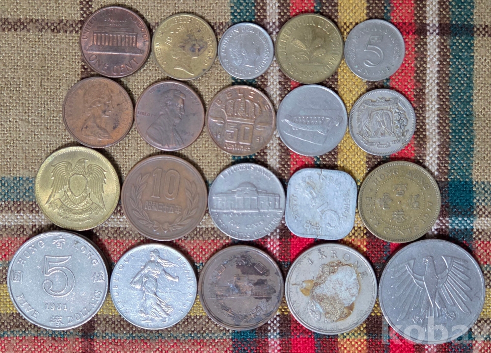 20점의 외국 동전들입니다