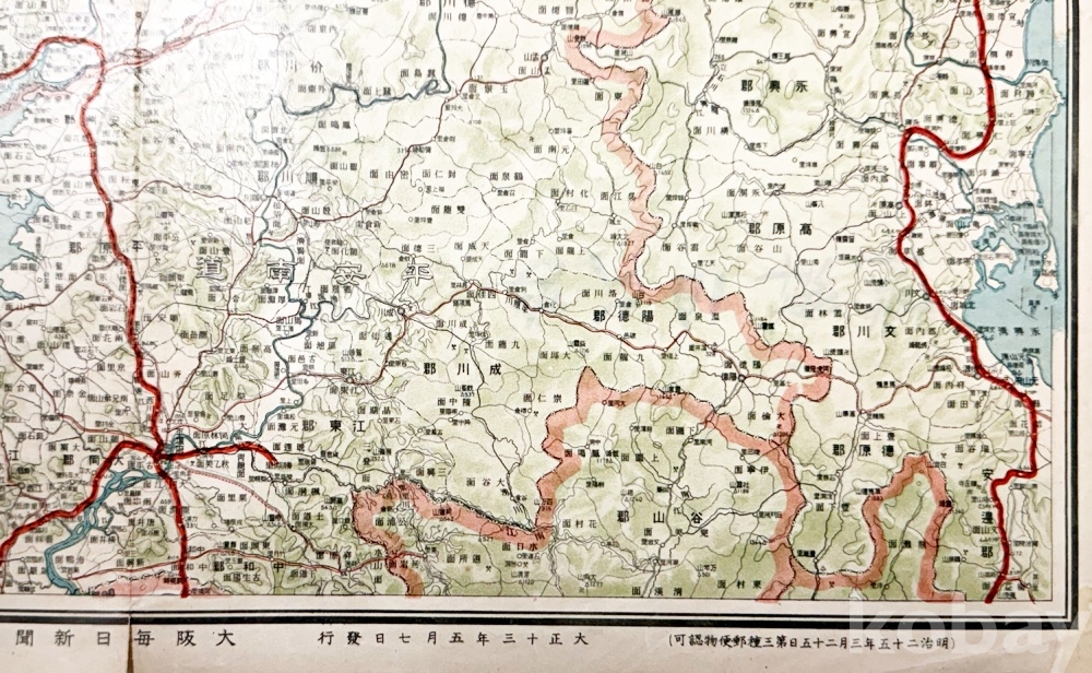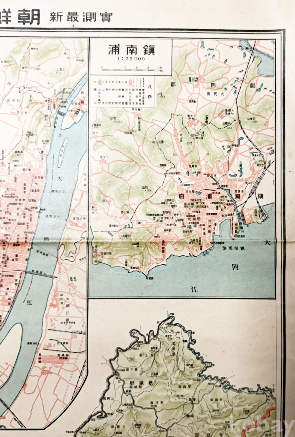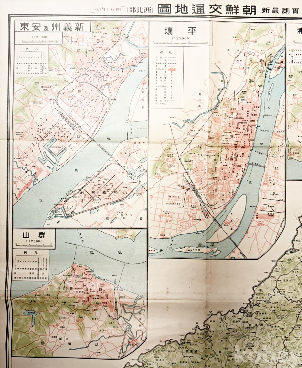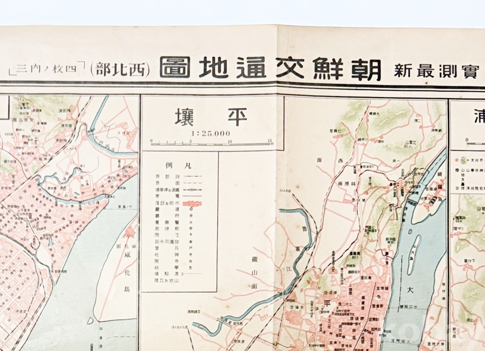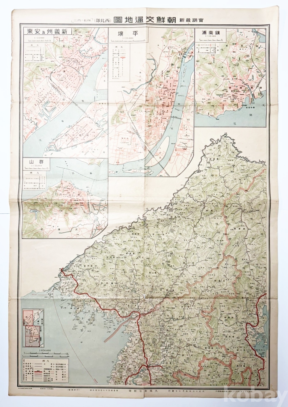 상품 설명 | 1924년 대판매일신문 14704호의 부록으로 木崎龍尾가 제작한 지도로, 조선의 서북부 지역을 지도의 중앙에 두고, 진남포, 신의주 및 안동, 평양, 군산 시가도를 함께 수록하고 있다. | ||