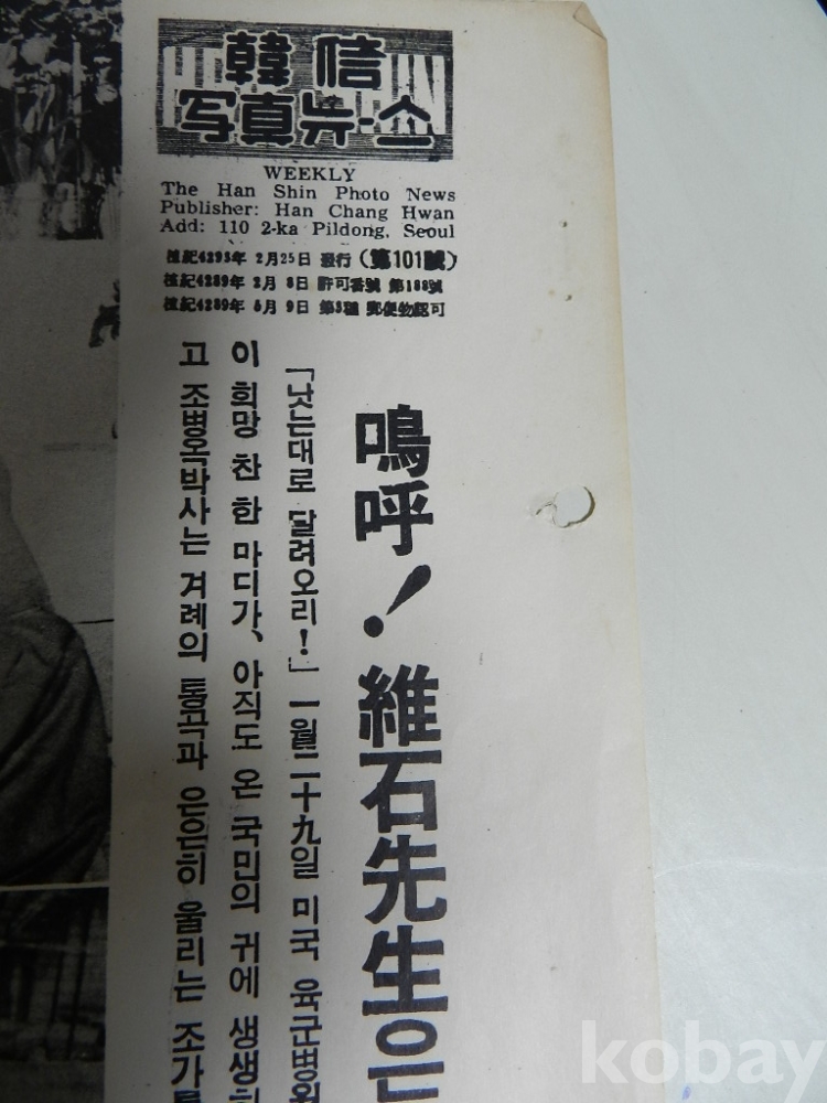 야당의 대통령 후보였던 조병옥 박사의 특집 사진 입니다 변색등 사용감 이미지 참고 바랍니다