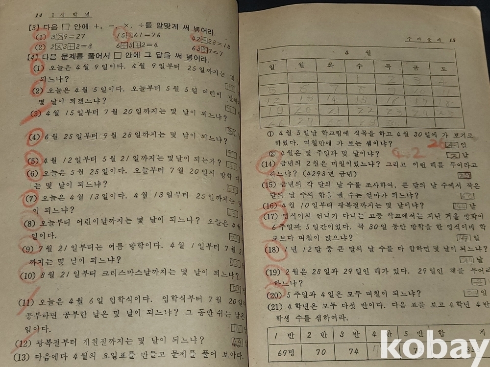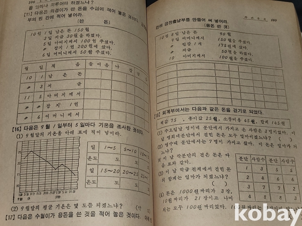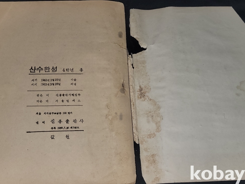 1963년 발행 산수완성 학습책, 대아 노우트 일기장입니다.
