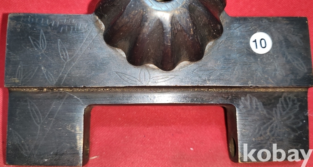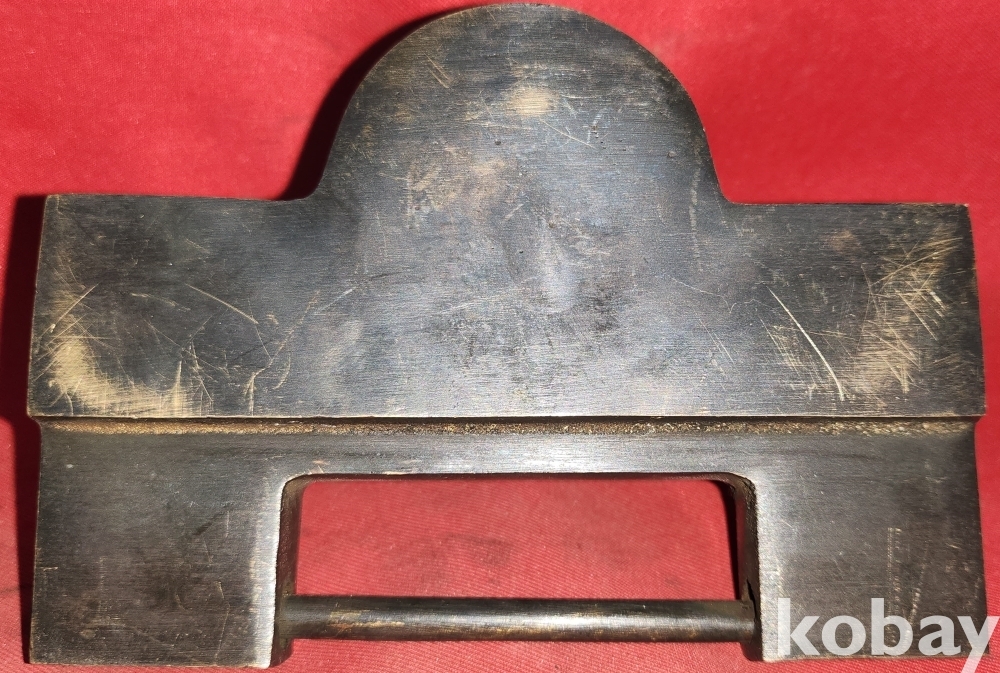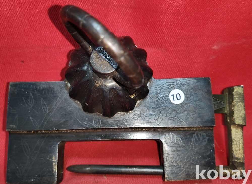 높은 연대를 갖춘 청동으로 만든 배꼽형 사군자 문양 자물통입니다,