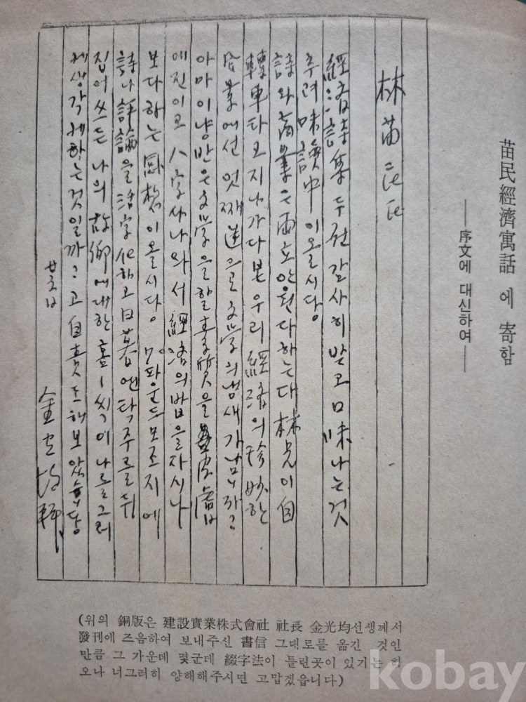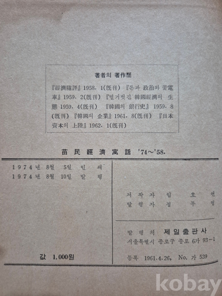 1974년 발간한 저서 『苗民經濟寓話 '74~'58』