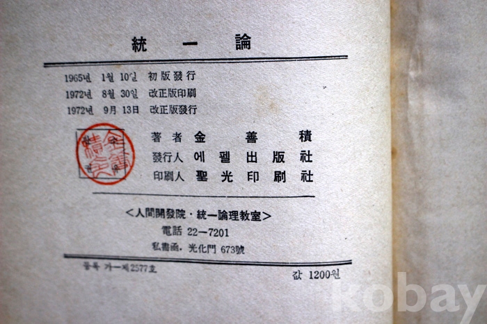통일론 (統一論) - 김선적 著 / 1972년. 에펠출판사 발행