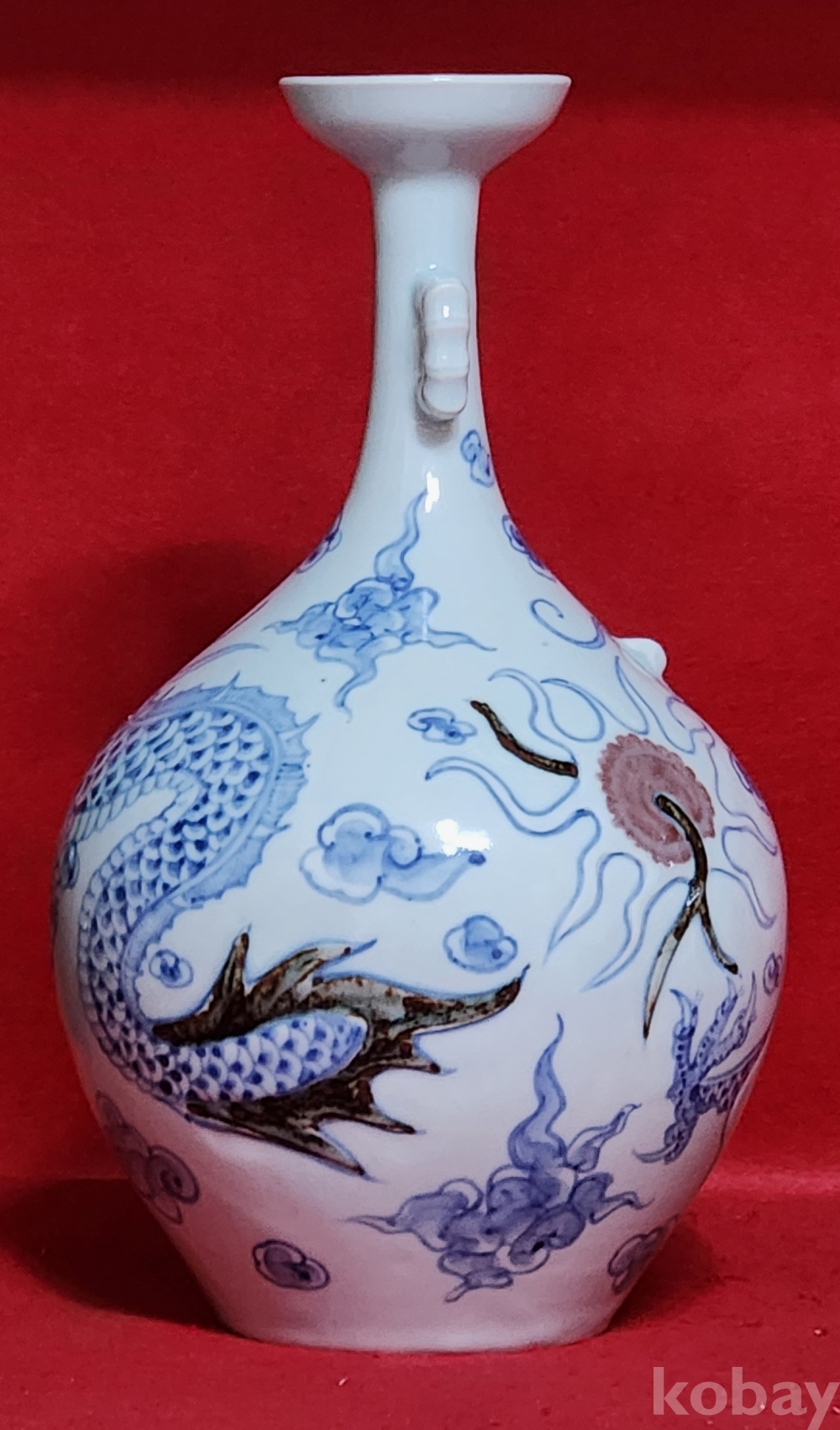 인간문화재 호산 안동오 선생님의 청화백자 철화 진사채 양각 용 양이호 입니다