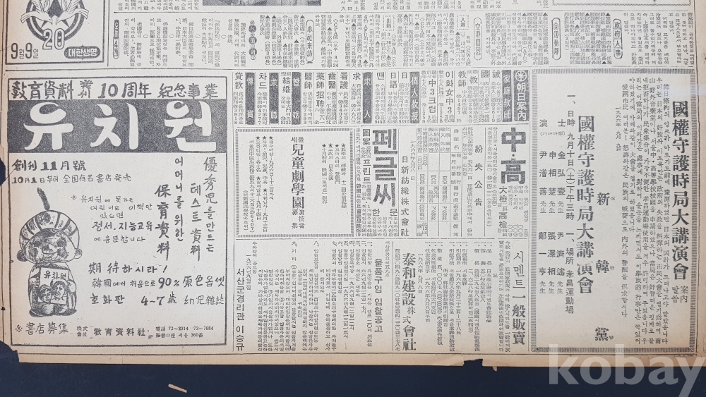 **** 조선일보/1966년 9월 9일/4면*국권수호시국대강연회 안내말씀 포함