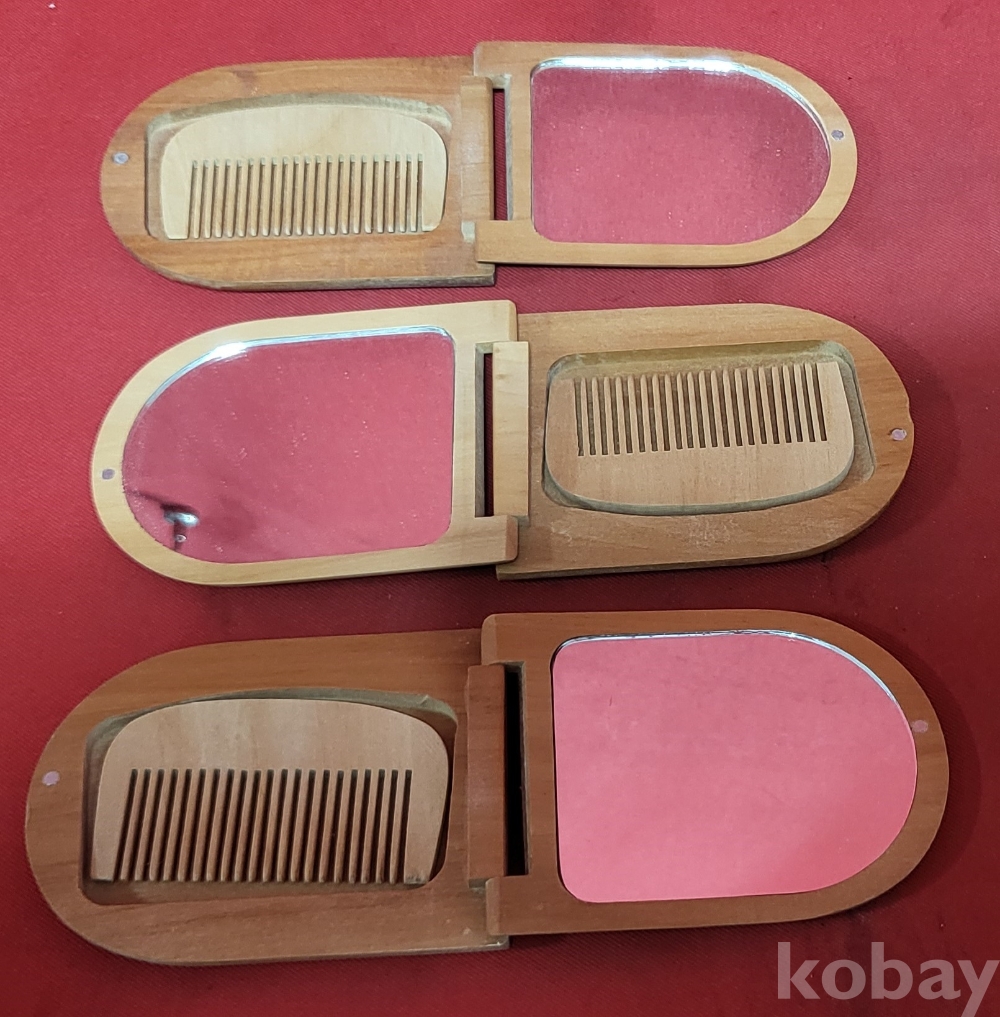 K 75 차 19下 스치번 ////// 한중문화관에서 만든 고급나무에 매화문양 빗과 거울이 함께하는 기념품 3개 일괄입니다,
