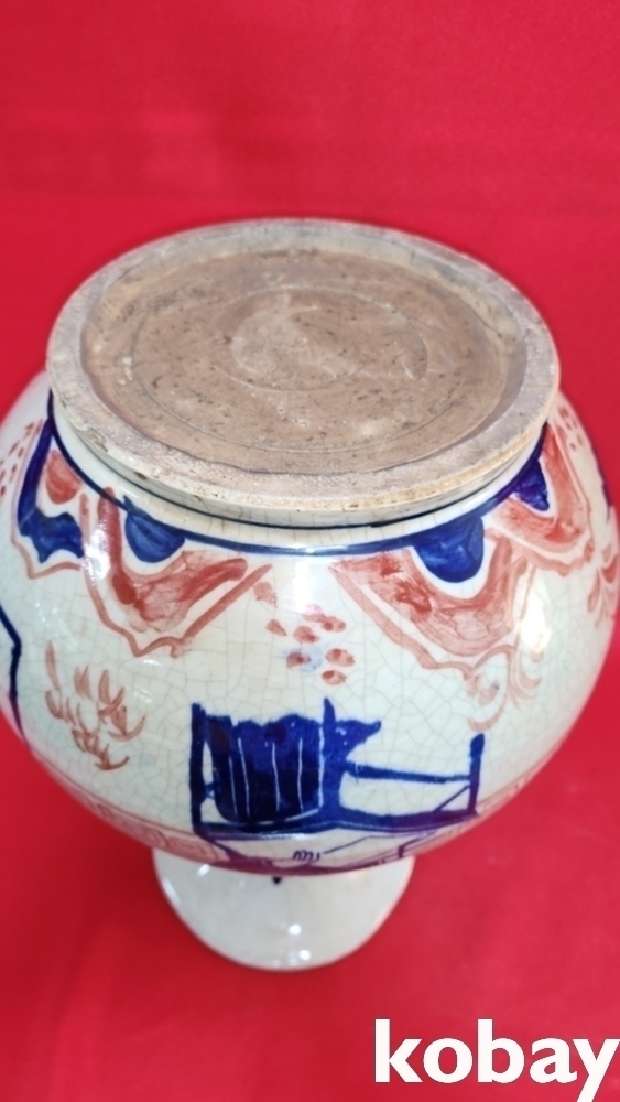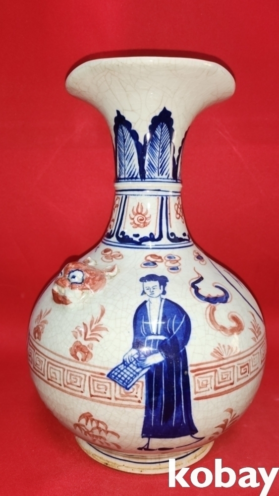 대원국지정8년제 청화 유리홍 양이(兩耳) 인물.불(佛)문양 화형 광구병입니다, 상태는 좋습니다