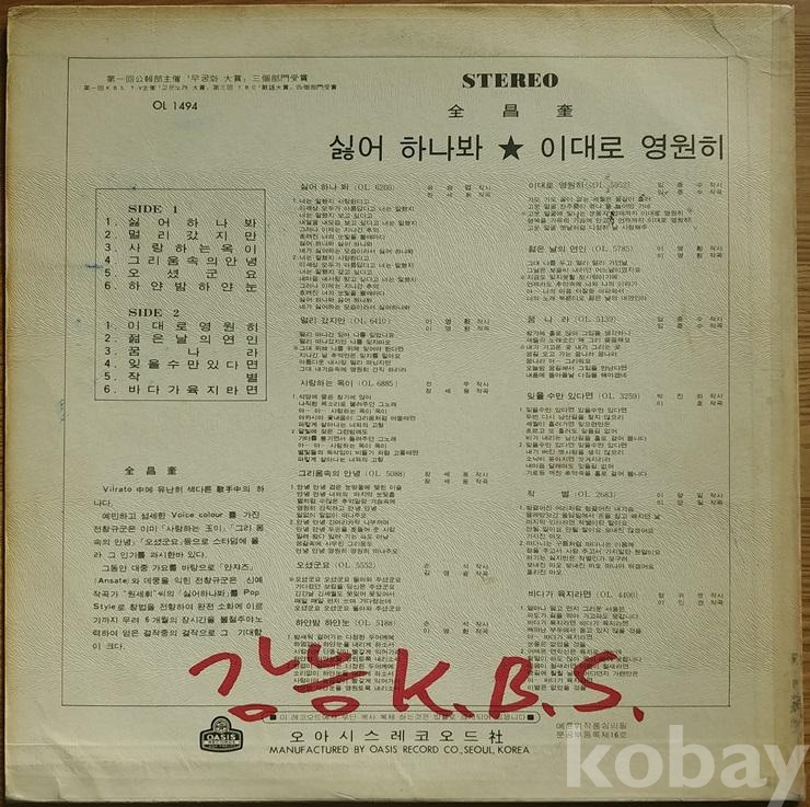 자켓상태 | EX : 약간의 마모, 모서리 찢김 존재 | 음반상태 | EX : 재생에 영향 없는 가벼운 기스 존재 | 발매정보 | 초반 | 가사지여부 | 유 |