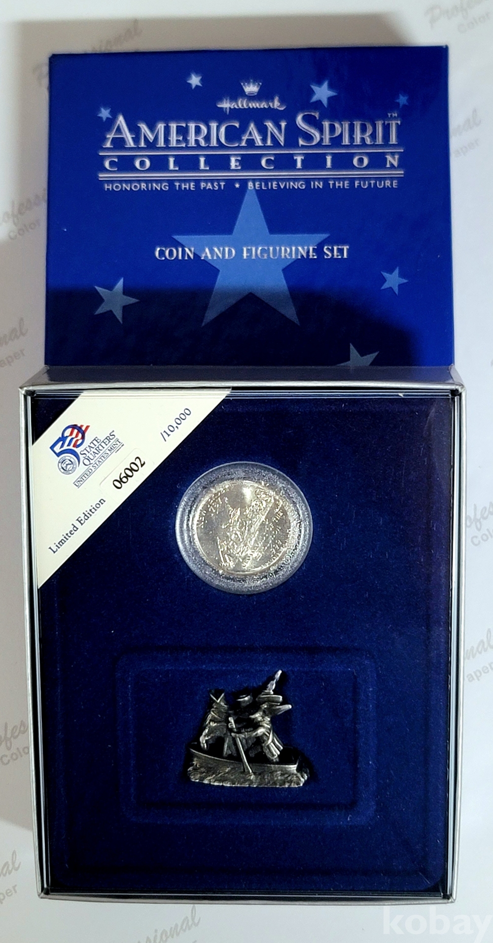 1999년 델라웨어 주 쿼터 기념 주화와 시저 로드니의 기마상을 묘사한 묵직한 주물 조각상이 포함된 한정판 세트입니다.