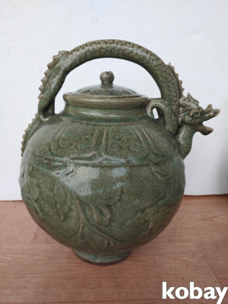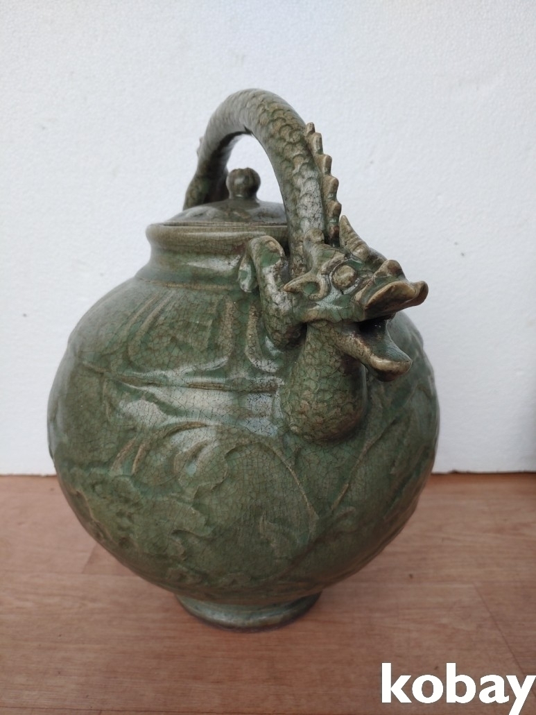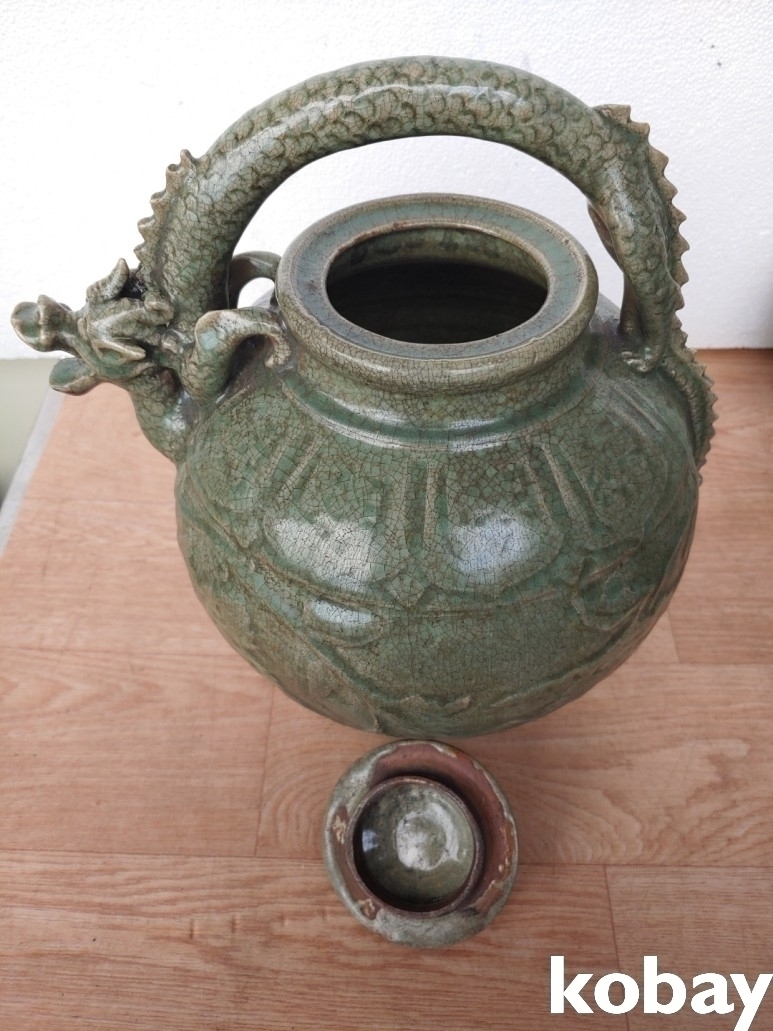 용 손잡이 대형 주전자 용천요 도자기 입니다.