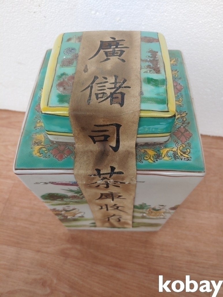 다양한 인물 표현이 있는 사각 보이차 도자기 입니다.